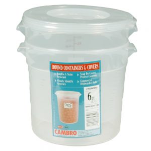 Container, Food, 6 Quart, Round, Translucent, Polypropylene, with Lid, 2 Ct Package
