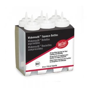 Bottles, Squeeze, 24 Ounce, Wide-Mouth, Clear, Polyethylene, 6 Ct Package