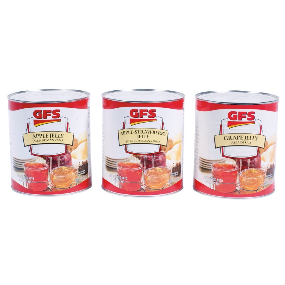Gordon Choice Apple/Grape/Apple & Strawberry Assortment Jelly, #10, 128 Oz Can, 6/Case