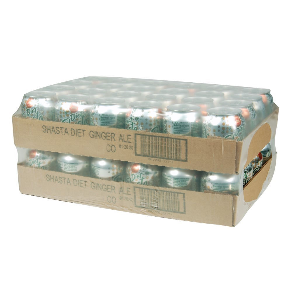 Shasta Zero Sugar Ginger Ale Soft Drink, Single-Serve, Can, 8 Fl Oz Can, 48/Case