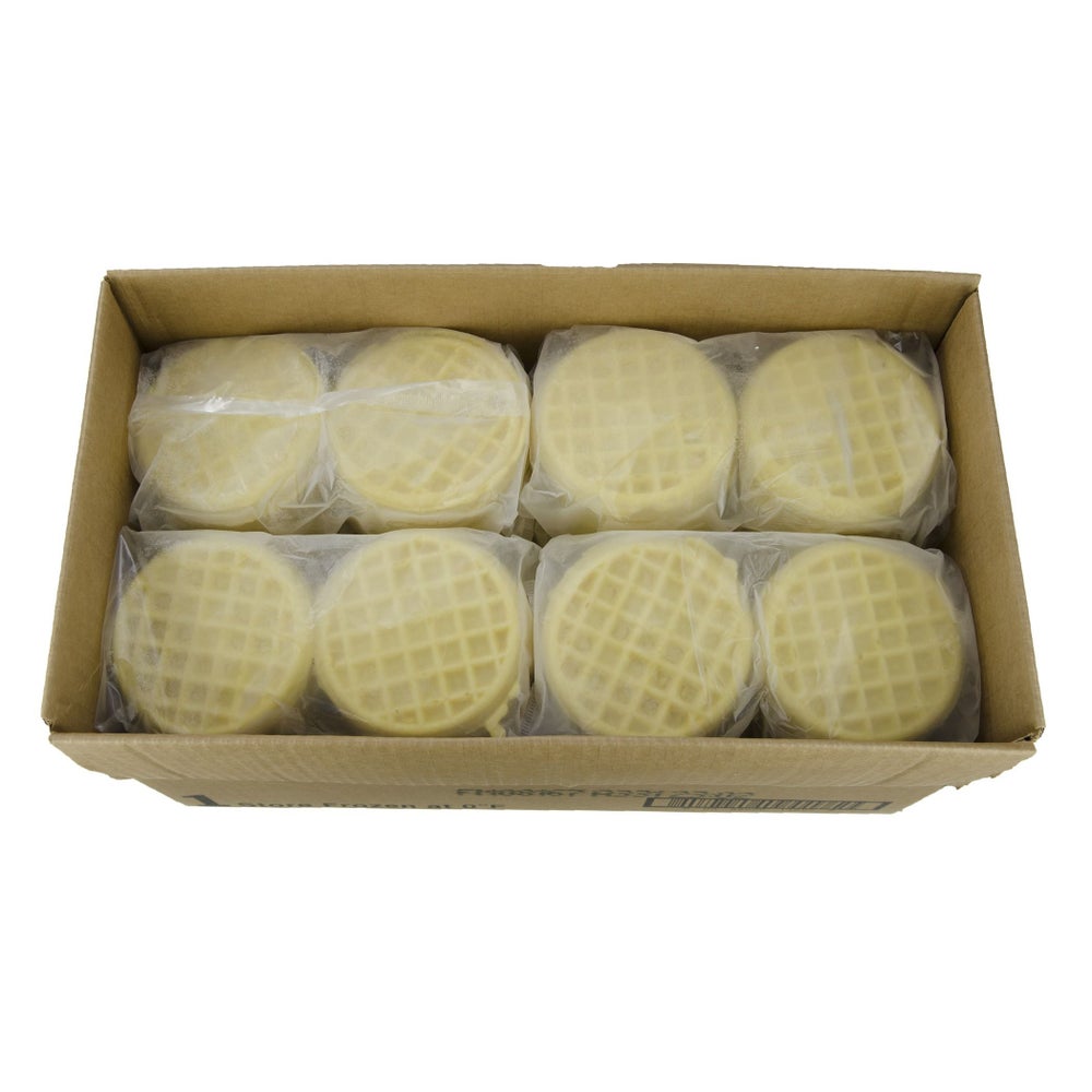 These heat and serve homestyle waffles can be used for breakfast, as an entree or for dessert menu applications.