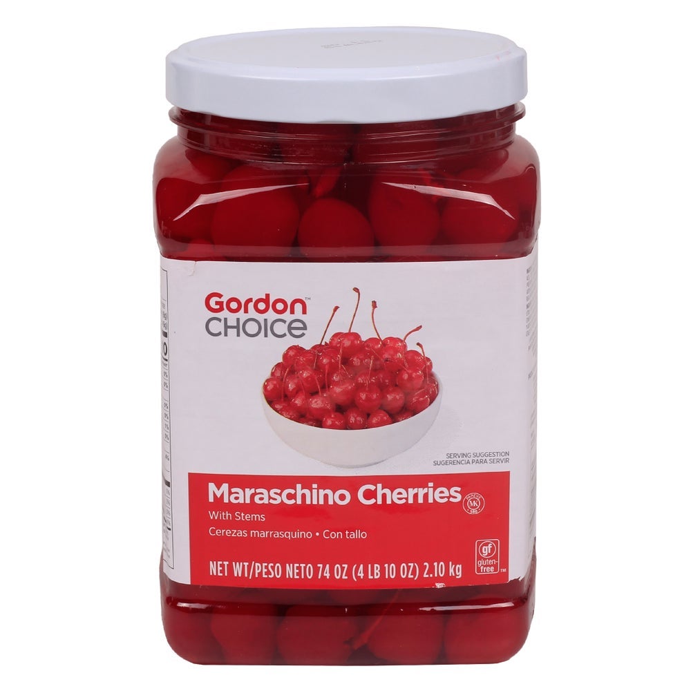 Gordon Choice Whole Red Maraschino Cherries, With Stems, Plastic, 0.5 Gal, 6/Case