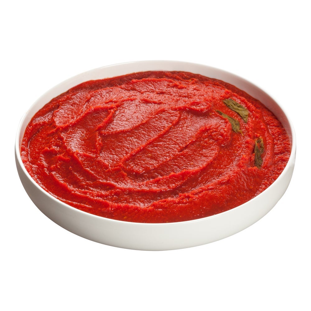 Packed from fresh tomatoes, this sauce has a homemade appearance and is a rich base with full-tomato flavor, deep-red color, and a "velvety" mouth-feel.