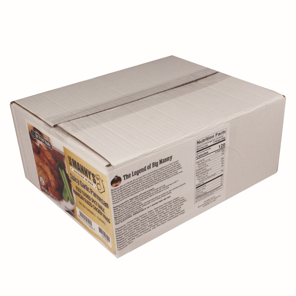 Big Manny's Spicy Garlic Parmesan Glazed Bone-In Chicken Wings, Cooked, Frozen, 1 Ounce, 3 Lb Bag, 2/Case