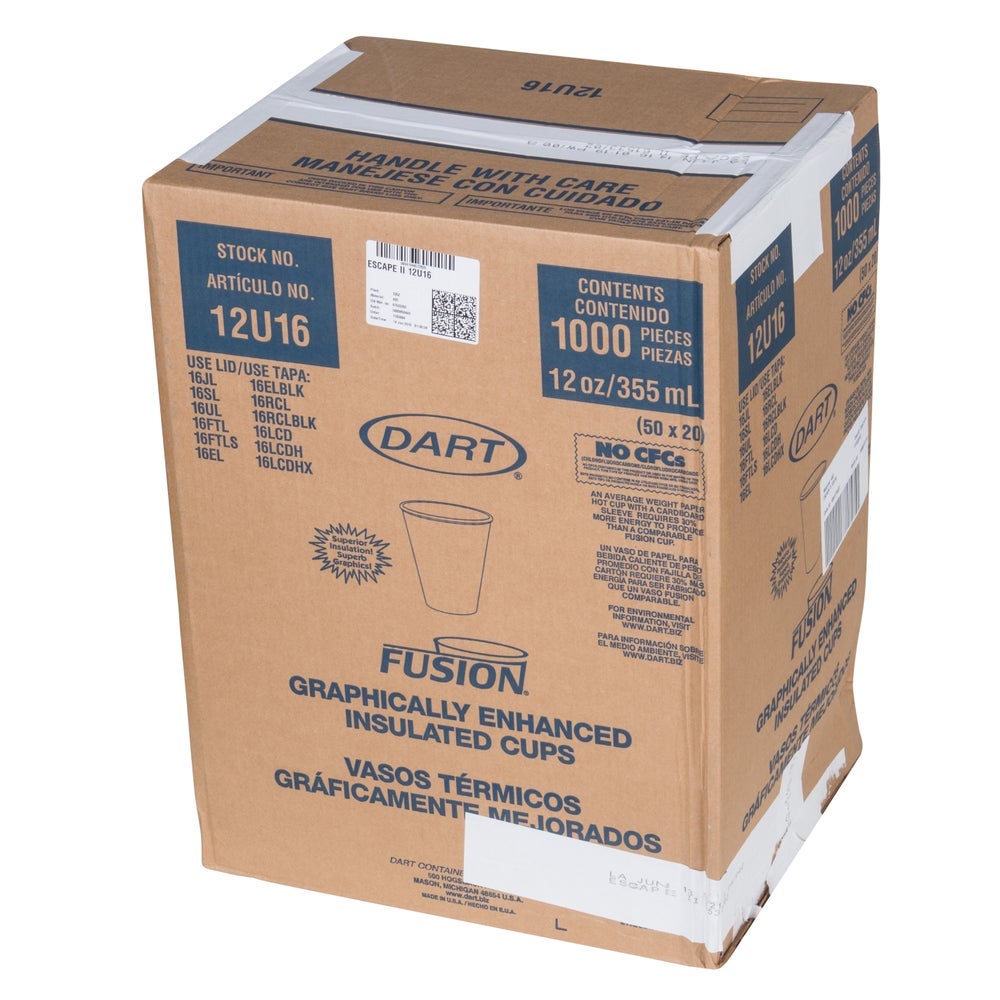 Dart 12 Ounce Foam & Paper Hot Cups, Escape Design, 40 Ct Package, 25/Case