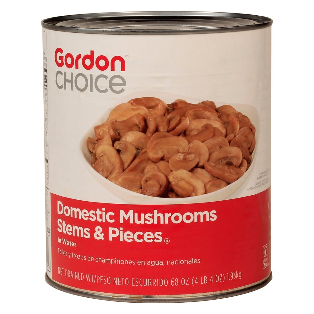 Gordon Choice Domestic Mushroom Stems & Pieces, in Water, #10, 113.33 Oz Can, 6/Case