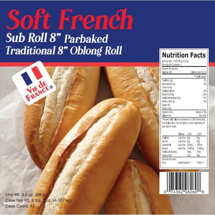 Vie De France Sub Rolls, 8 Inch, Frozen, 1 Each, 42 Ct Package, 1/Case