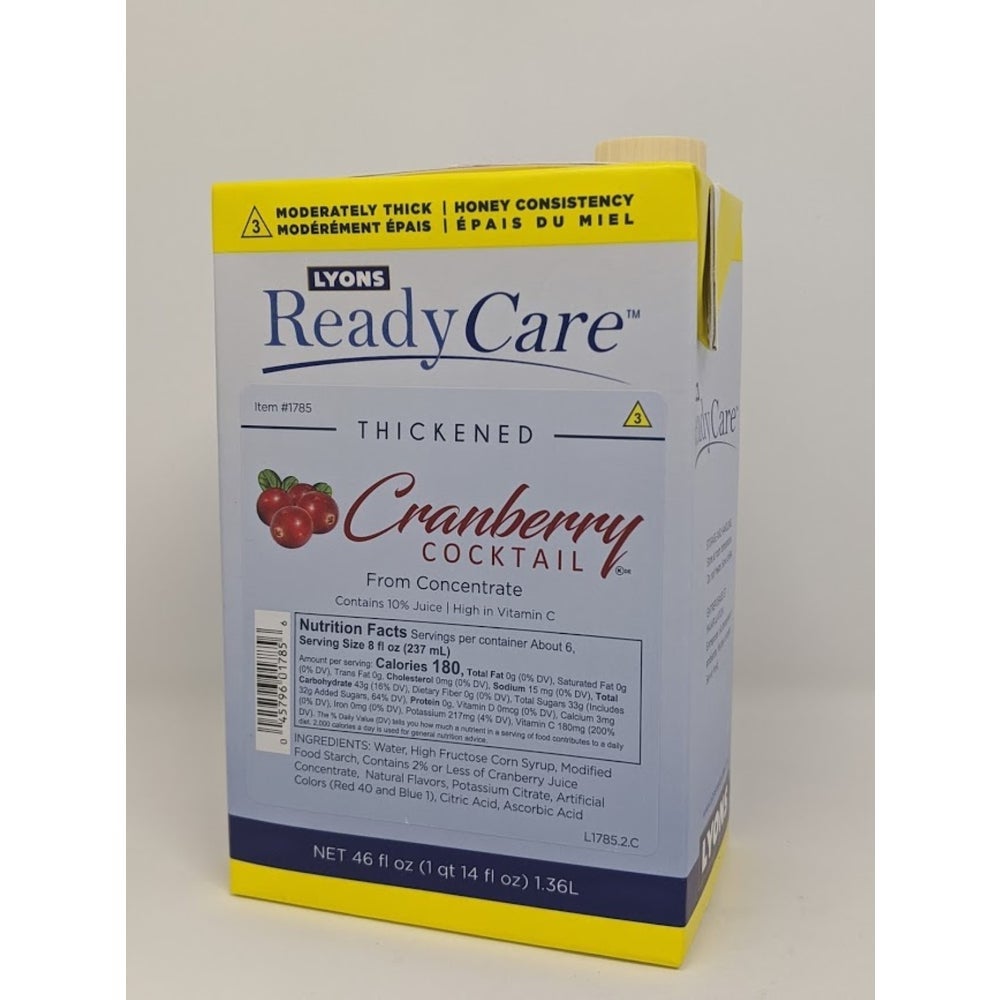 ReadyCare Cranberry Juice Honey Thickened Beverage, 46 Fl Oz Carton, 6/Case
