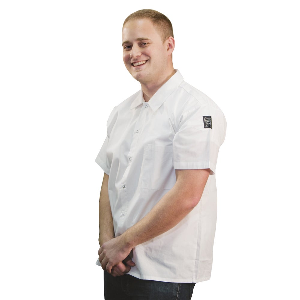 Chef Revival Short Sleeve Unisex Cook Shirt, White, Large, 65-35 Blend, Snap-Front, 1/Each