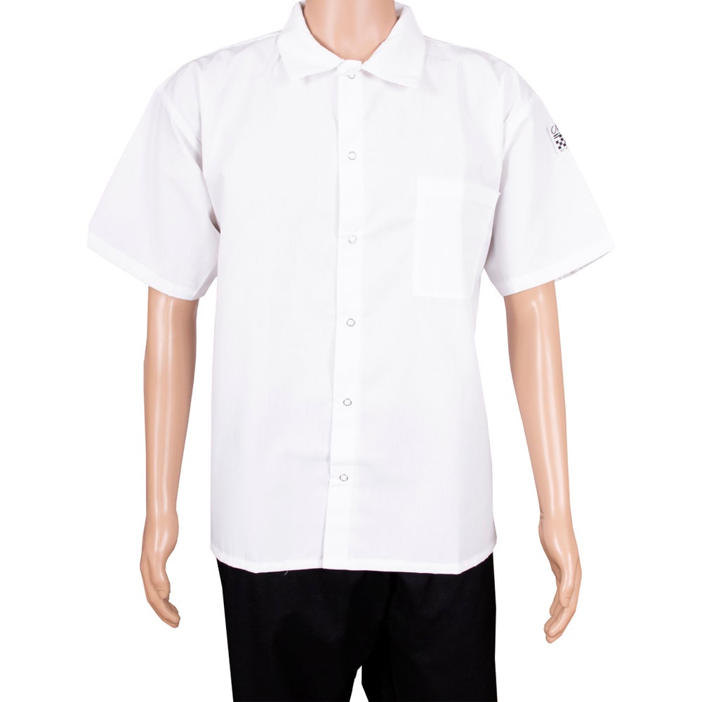 Chef Revival Short Sleeve Unisex Cook Shirt, White, X-Large, 65-35 Blend, Snap-Front, 1/Each