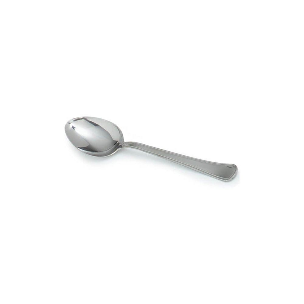 This solid spoon features heavy-duty, mirror-polished, 18-8 stainless steel construction with a hollow handle for a lighter and easier to handle utensil.