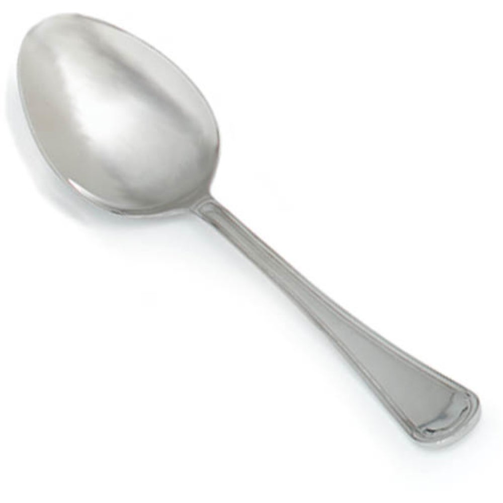 This solid spoon features heavy-duty, mirror-polished, 18-8 stainless steel construction with a hollow handle for a lighter and easier to handle utensil.