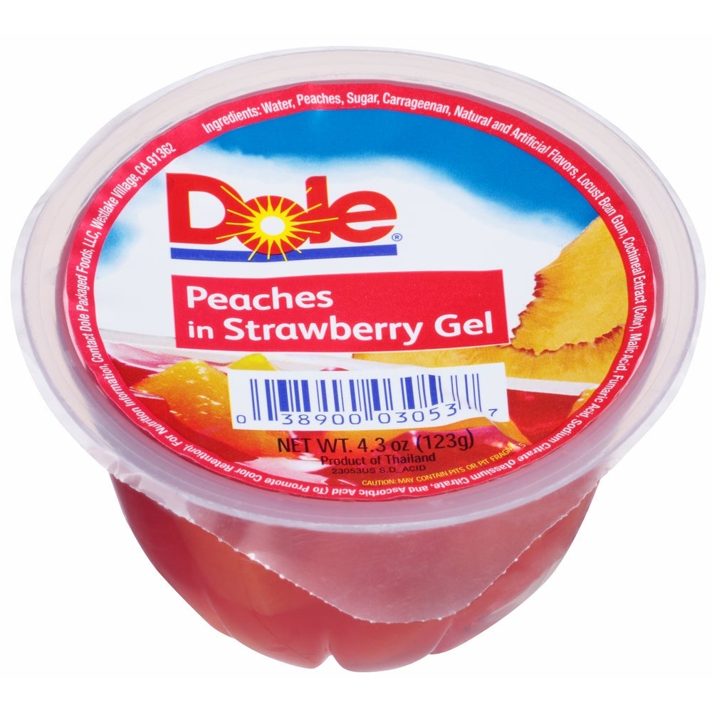 Dole Peaches, in Strawberry Gelatin, Fancy, 4.3 Oz Each, 36/Case