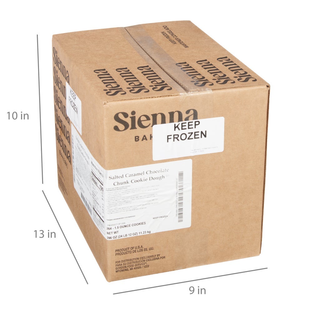 Sienna Bakery Chocolate Chunk Cookie Dough, with Salted Caramel Bits, Frozen, 1.5 Ounce, 264 Ct Package, 1/Case