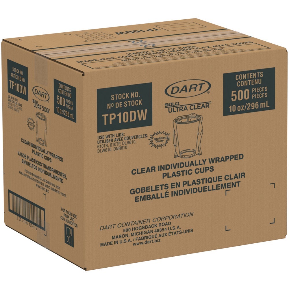 Dart 10 Ounce Plastic Cold Cups, Clear, Individually Wrapped, PET, 10 Ounce, 25 Ct Package, 20/Case