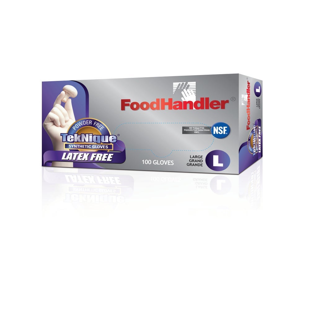 FoodHandler Teknique Large Powder-Free Synthetic Gloves, Natural, 100 Ct Box, 4/Case