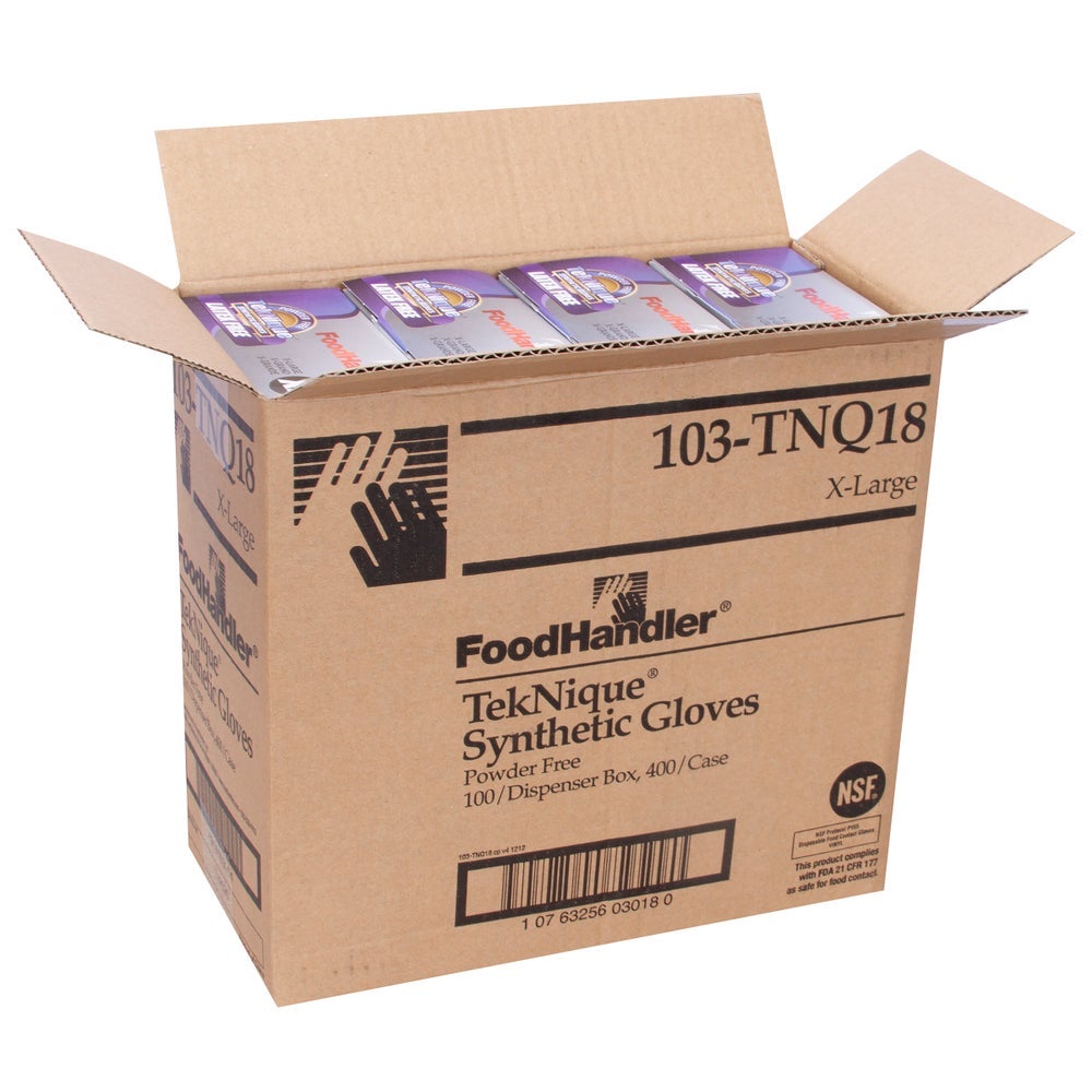 FoodHandler Teknique X-Large Powder-Free Synthetic Gloves, Natural, 100 Ct Box, 4/Case