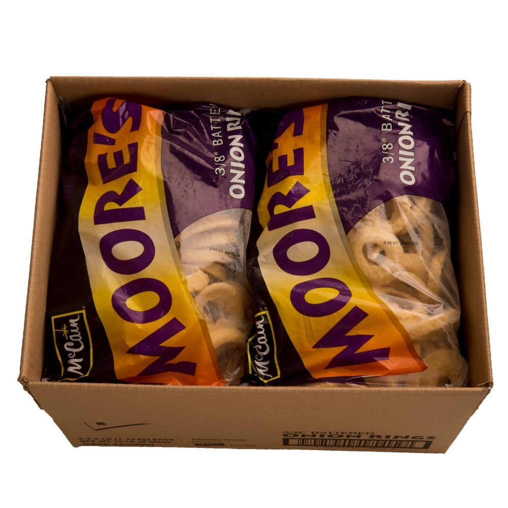 Moore's Battered Sweet Yellow Onion Rings, 3/8 Inch, Ovenable, IQF, 2.5 Lb Bag, 6/Case