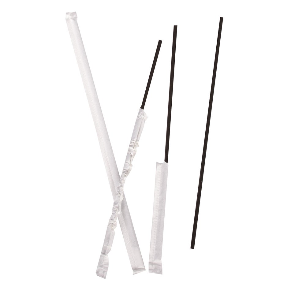 Pantry Value 8 Inch Plastic Stirrers, Black, Wrapped, Polypropylene, 750 Ct Box, 4/Case