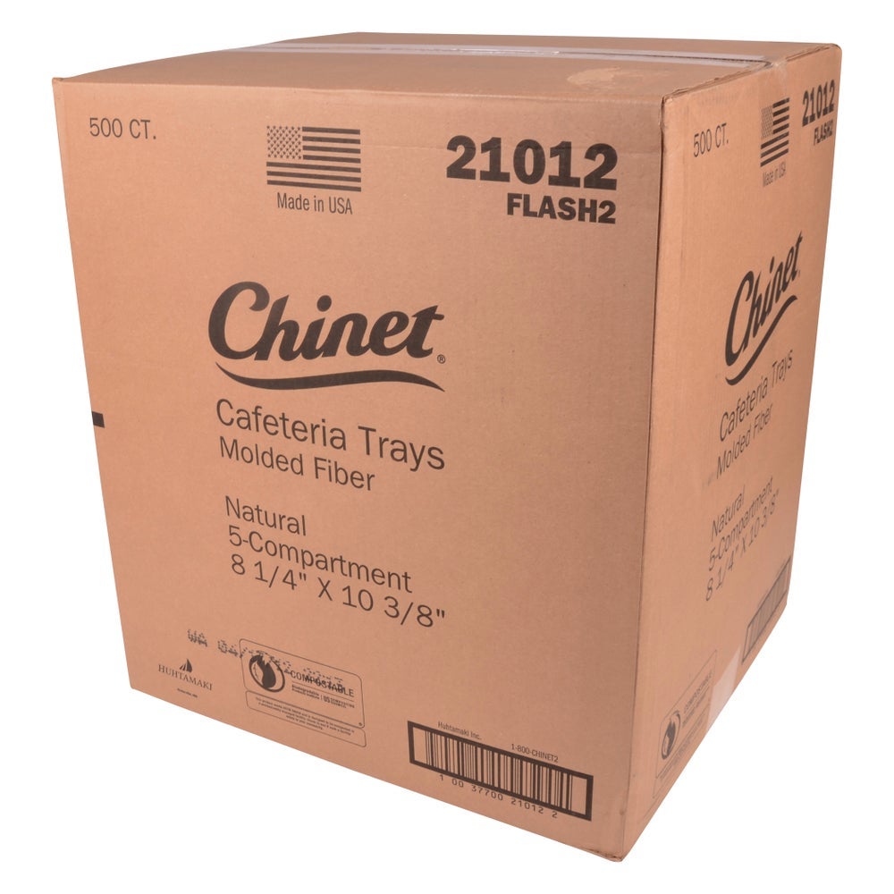 Savaday 8.5 x 10.5 Inch Molded Fiber 5-Compartment School Lunch Trays, Beige, 250 Ct Package, 2/Case
