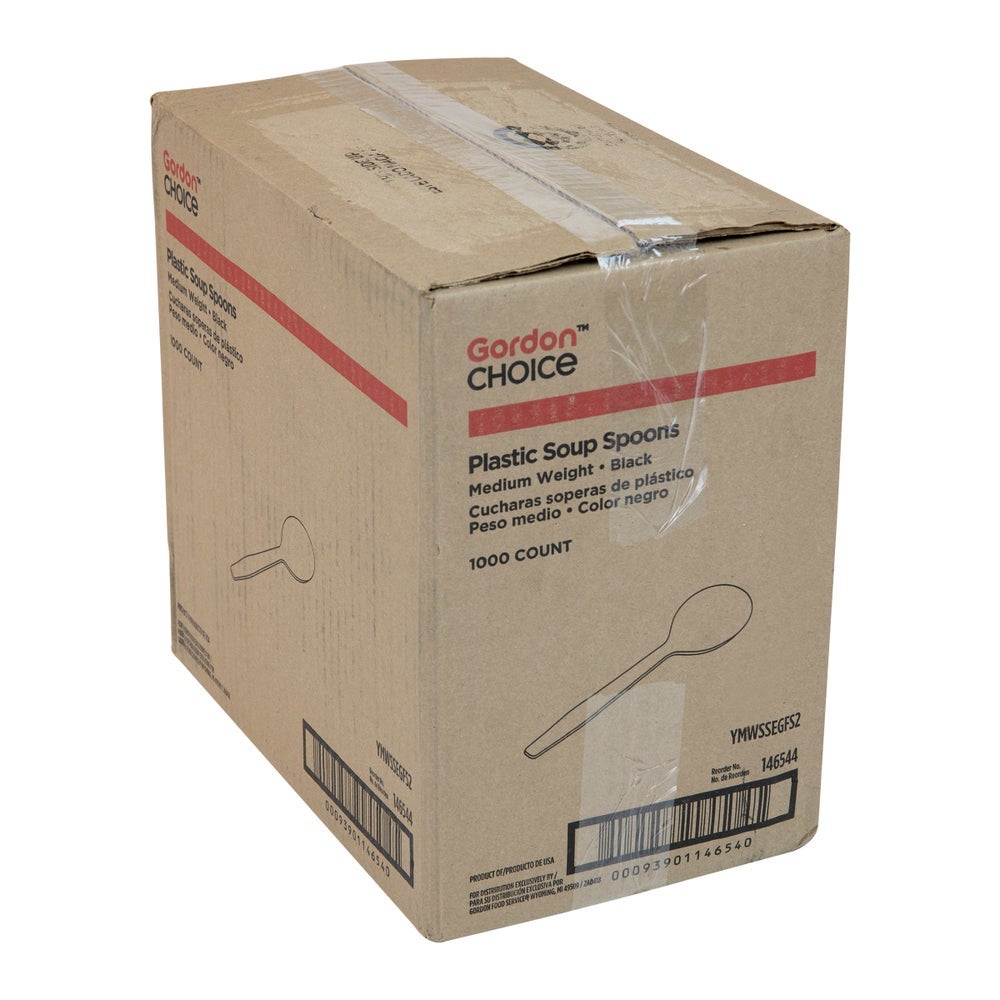 Gordon Choice Medium-Heavyweight Plastic Soup Spoons, Black, with Medium-Length Handles, Polystyrene, 1000/Case