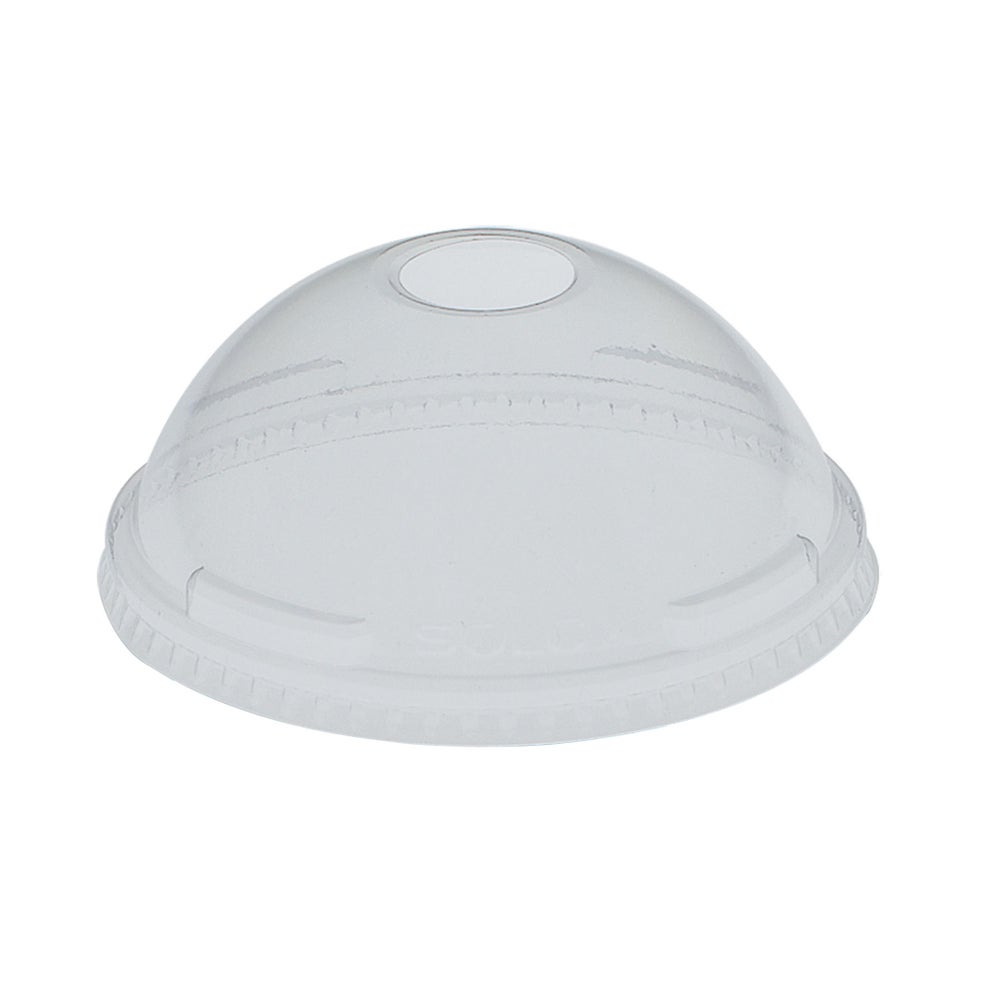 These lids provide a clear view of the cup's contents, and allow extra space for whipped cream. These lids allow for the cup's contents to go above the rim, such as with crushed-ice drinks and parfaits.