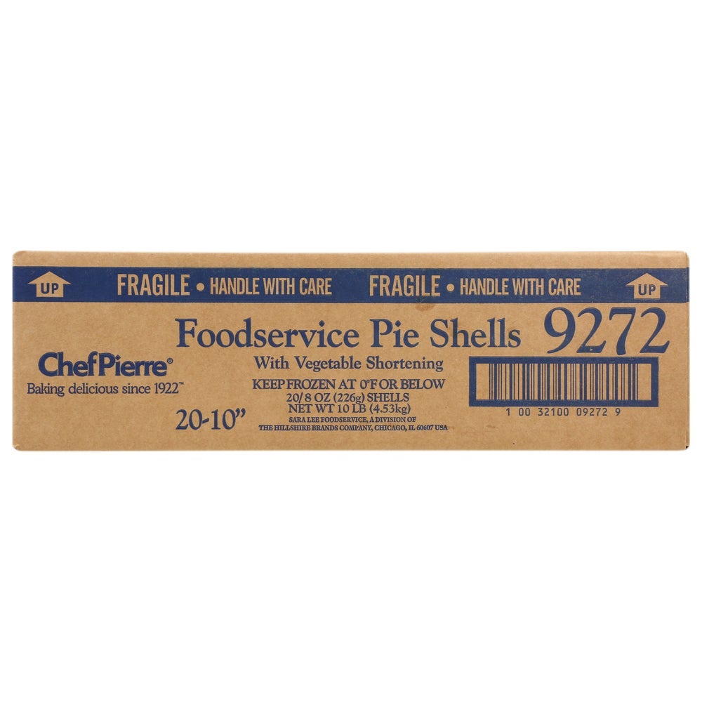 Chef Pierre Unbaked 10 Inch Plain Pie Shells, Frozen, 5 Ct Package, 4/Case