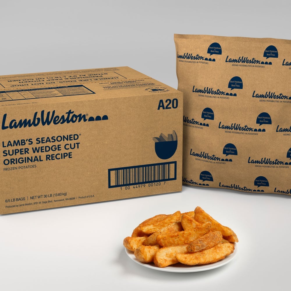 Lamb Weston Long Fancy Wedge Cut French Fries, Seasoned & Coated, Skin-On, Bakeable, Frozen, 5 Lb Bag, 6/Case