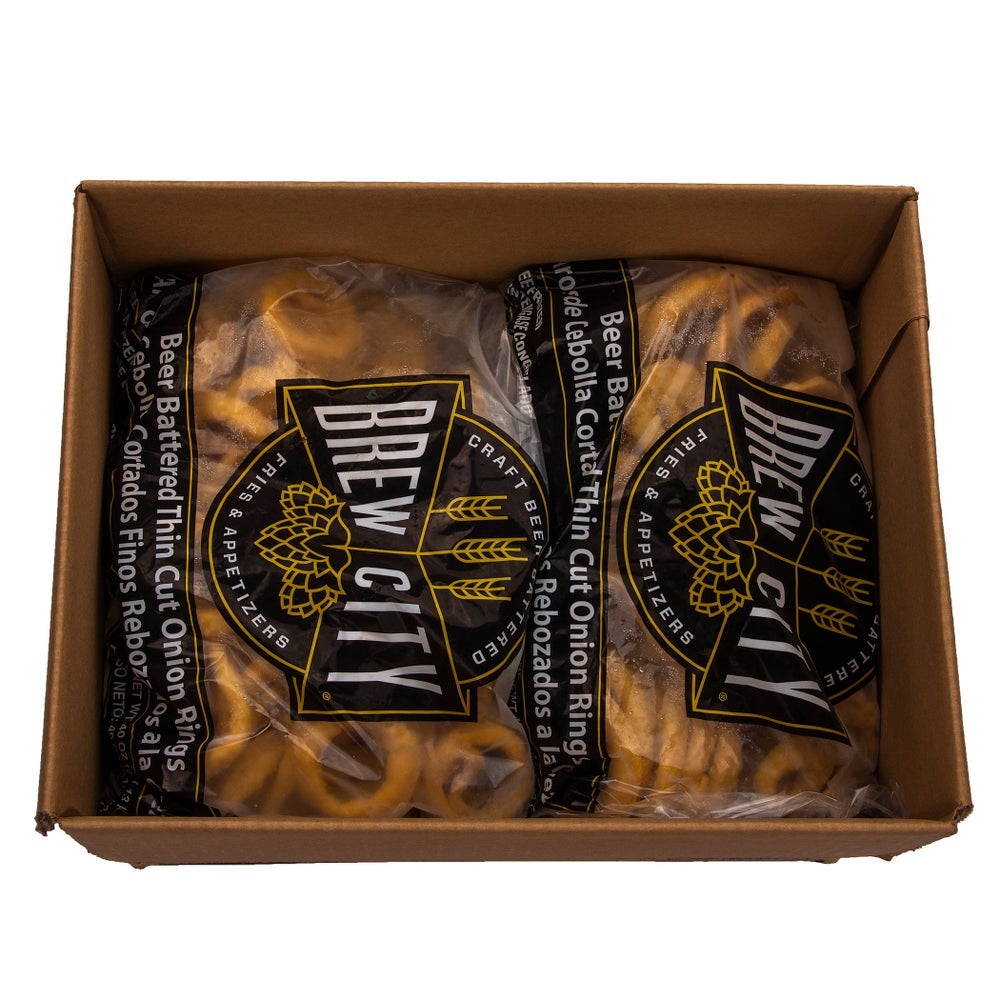 Brew City Beer Battered Sweet Yellow Onion Rings, Thin-Cut 3/8 Inch, Ovenable, IQF, 2.5 Lb Bag, 6/Case