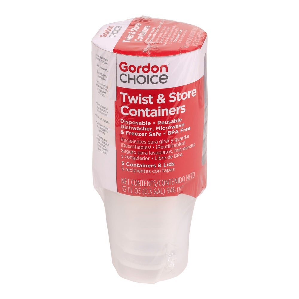 Gordon Choice 32 Ounce Plastic Twist and Store Food Containers, Clear, with Lids, 5 Ct Package, 6/Case