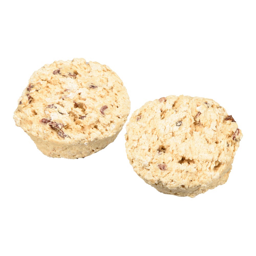 This oatmeal raisin cookie dough features rolled oats with real California raisins and cinnamon spice.