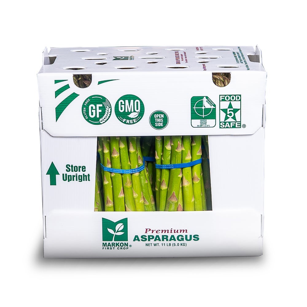 - This asparagus comes in an 11-pound case.