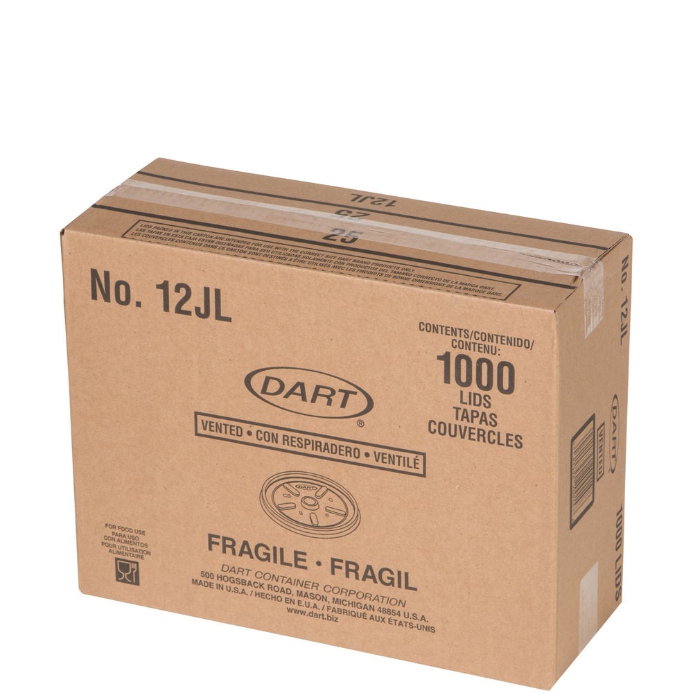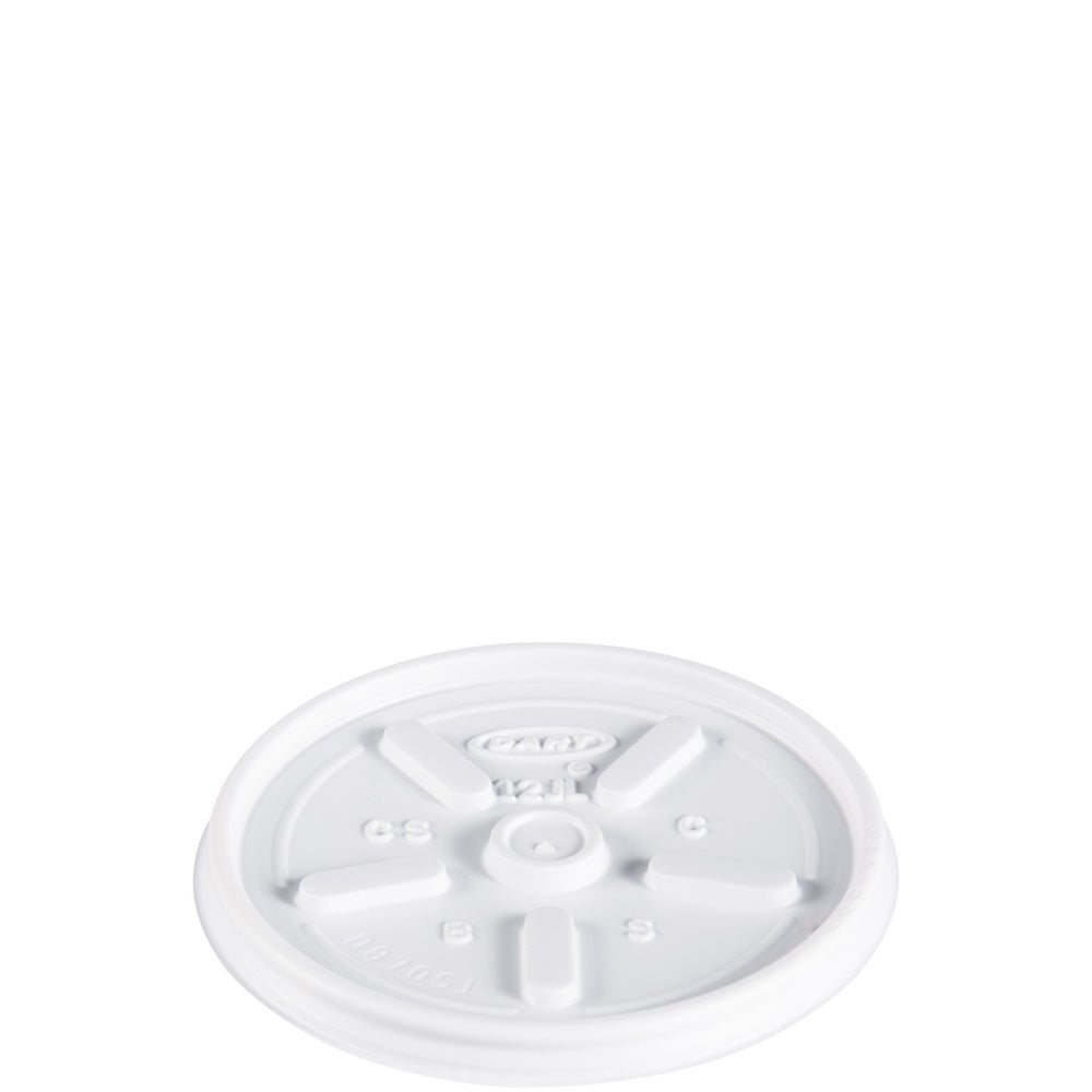 Dart Vented Plastic Lids, White, Polystyrene, for 6-8 Ounce Containers & 12 Ounce Cups, 100 Ct Package, 10/Case