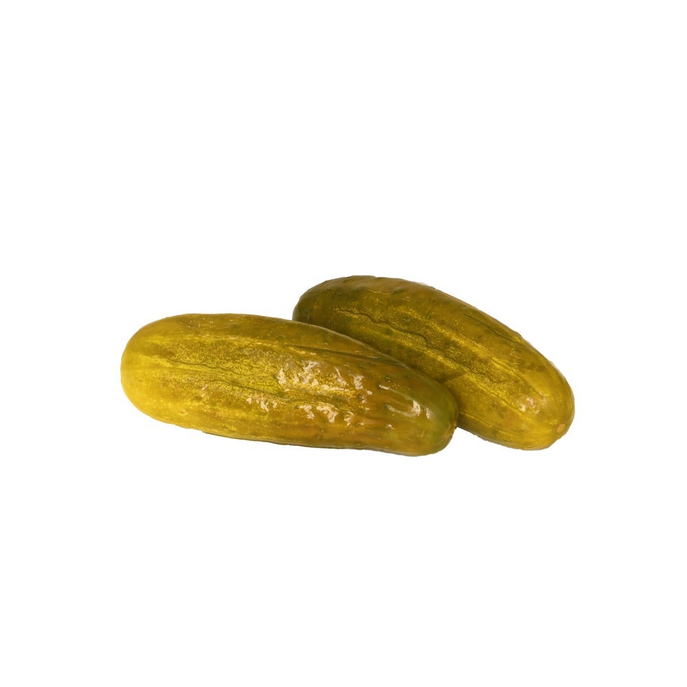 Whole dill pickles are individually wrapped in an easy-open plastic bag, with no added juice.