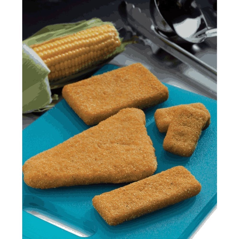 These breaded Alaskan pollock fillets have a mild flavor and flaky white flesh. The wild-caught fillets have a Southern-style cornmeal coating. Each fillet weighs 3.6 ounces average.