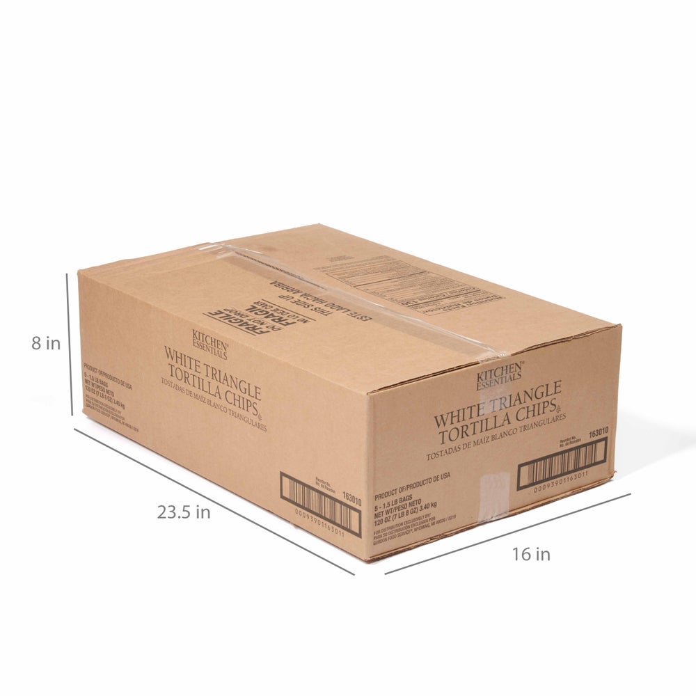 Kitchen Essentials White Corn Tortilla Chips, Triangular, Bulk, 1.5 Lb Bag, 5/Case
