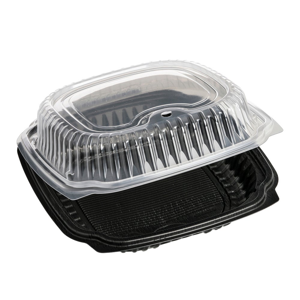 Anchor Packaging Culinary Classics 9 x 9 Inch Microwaveable Plastic 1-Compartment Containers, Black, Hinged, Vented, Polypropylene, 50 Ct Package, 2/Case