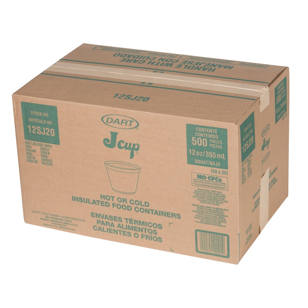Dart 12 Ounce Foam Containers, White, Polystyrene, 25 Ct Package, 20/Case