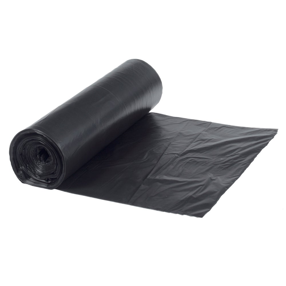 Array 56 Gallon Black Can Liners, High Density, 16 Micron, 43 x 48 Inches, 25 Ct Roll, 8/Case