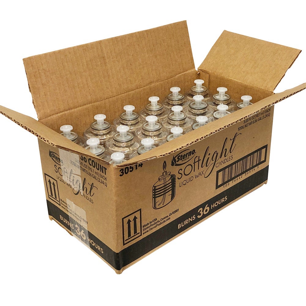 Sterno Products SoftLight 36 Hour Liquid Wax Candle, Clear, 36/Case