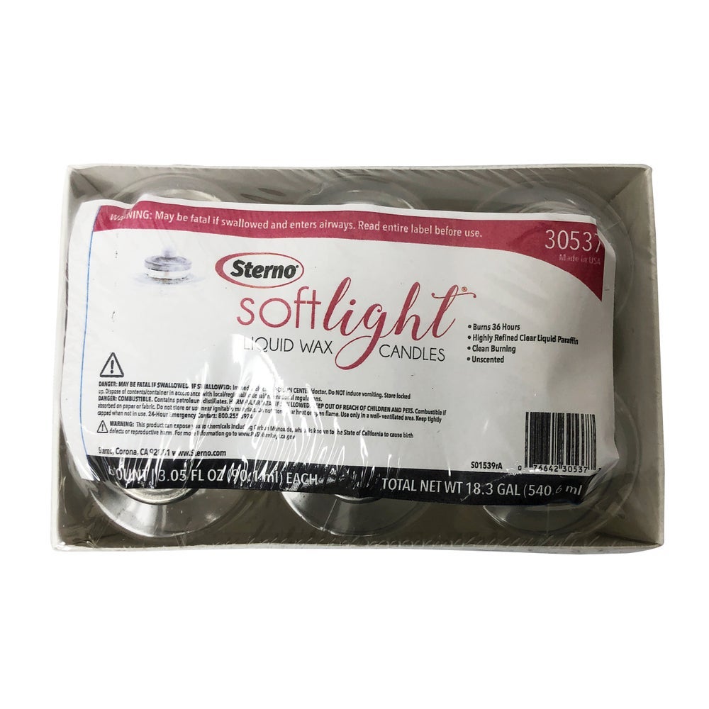 Sterno Products Soft Light 36 Hour Liquid Wax Fuel Cells, Clear, 6 Ct Package, 6/Case