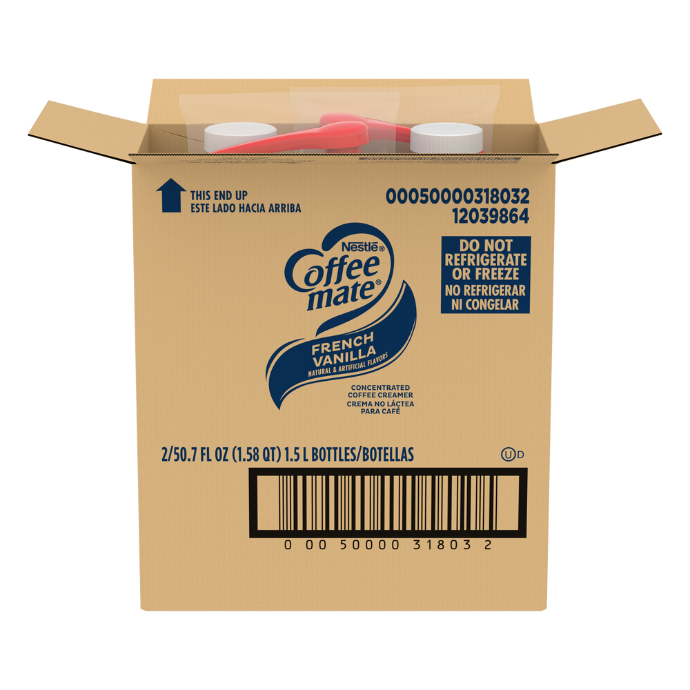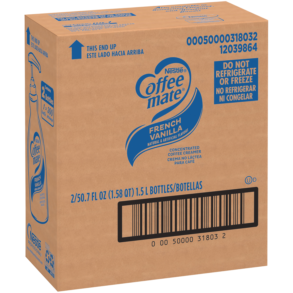 Coffee Mate French Vanilla Non-Dairy Liquid Creamer Concentrate, with Pump, Shelf-Stable, Bulk, 1.5 Ltr, 2/Case