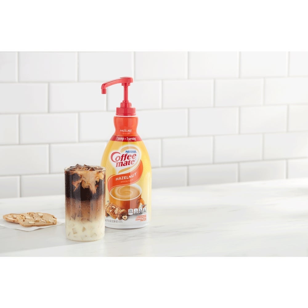 Coffee Mate Hazelnut Non-Dairy Liquid Creamer Concentrate, with Pump, Shelf-Stable, Bulk, 1.5 Ltr, 2/Case