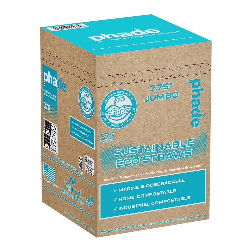 Phade 7.75 Inch Plastic Jumbo Straws, Paper-Wrapped, 375 Ct Package, 10/Case
