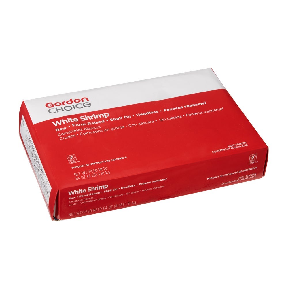 Gordon Choice White Shrimp, Shell-On, Headless, 16-20 Count per Pound, Raw, Block Frozen, 4 Lb Box, 6/Case