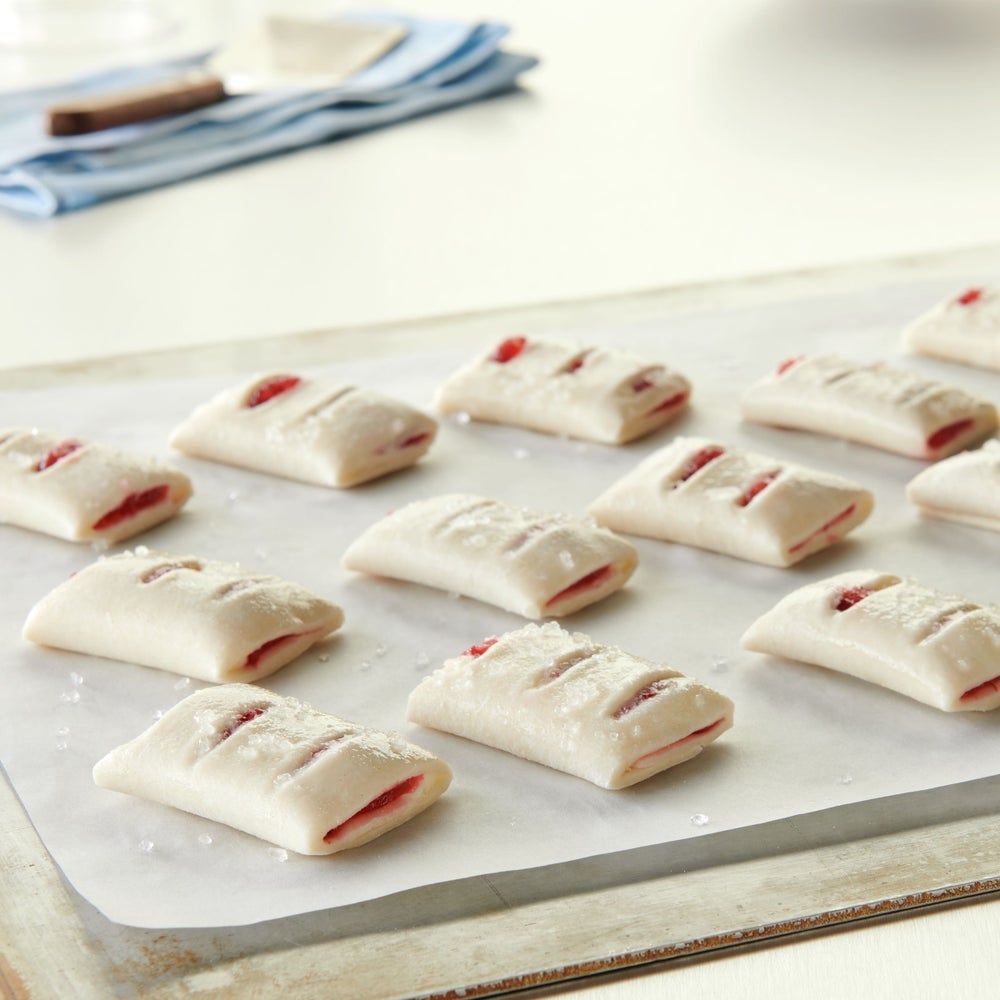 - Frozen Strudel Bites made with Pillsbury Puff Pastry Dough and a sweet, cherry filling and a sugared top. Formulated to produce light and flaky dough when baked in an easy, freezer-to-oven format with no proofing required.