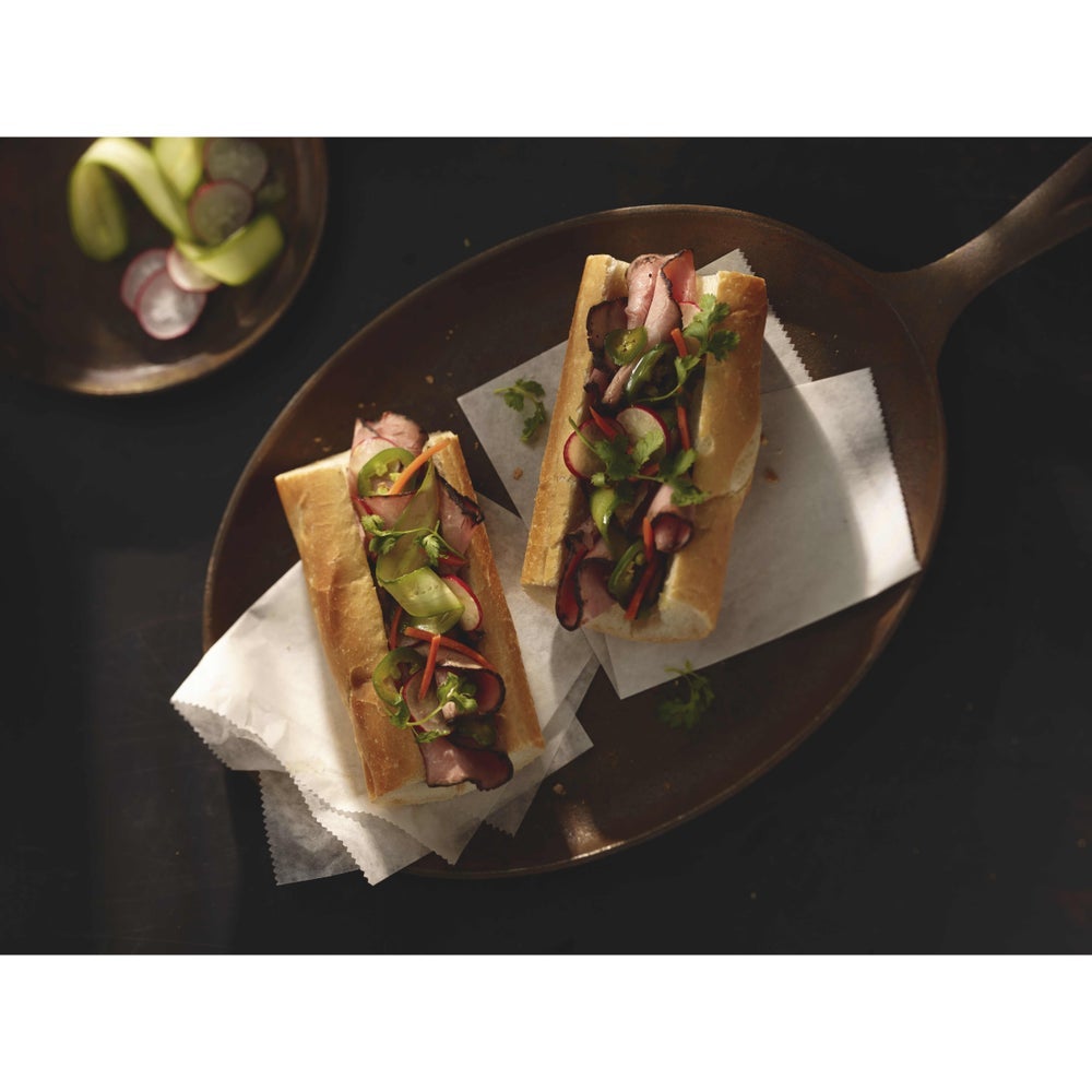 This USDA choice top round roast beef has been cooked to rare and features an all-natural flavor.