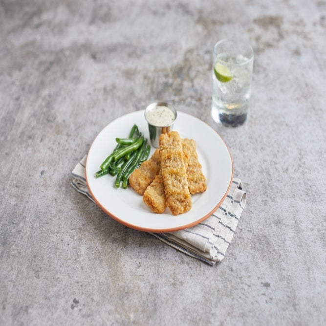 These beef steak fingers are battered with a buttermilk blend, and breaded with a flour-based breading.