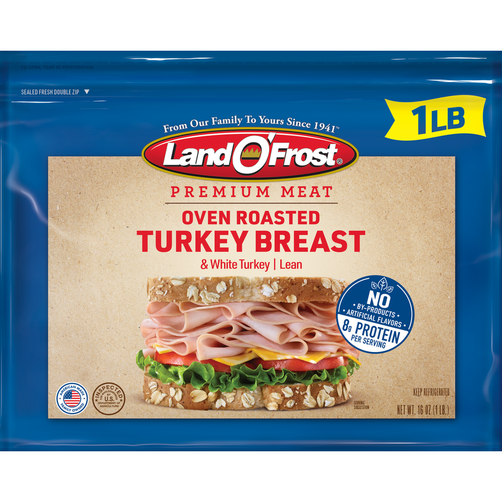 Land O' Frost Sliced Oven Roasted Turkey Breast, Lean, 16 Oz Each, 8/Case