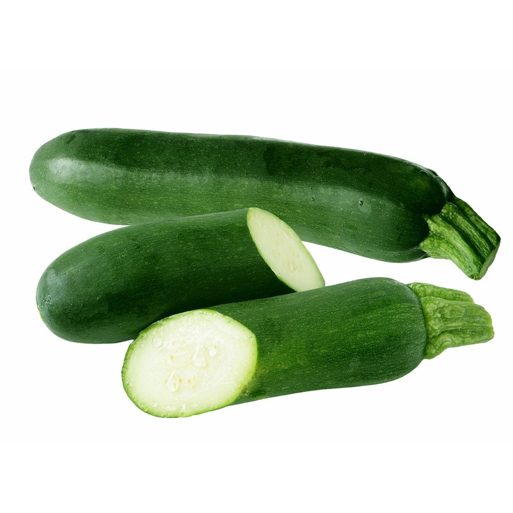 - Enjoy a mild flavor and subtle, seedy texture with this zucchini. It's cylindrical in shape with dark-green skin and a creamy, white flesh. Brand may vary.